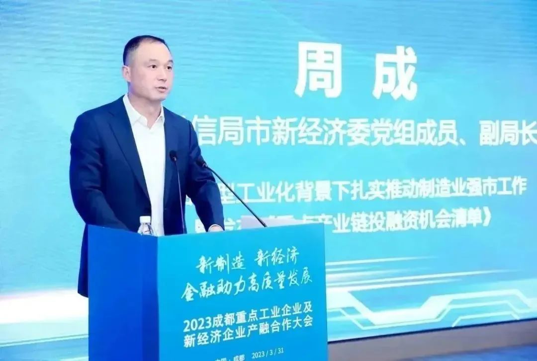 为落实中央、省委、市委经济工作会议部署,推进新型工业化高质量发展任务,深化产融合作,切实提升金融对成都工业和新经济的支持力度。3月31日,由成都市地方金融监督管理局、成都市经信局市新经济委主办,成都金融业联合会承办,以“新制造 新经济 金融助力高质量发展”为主题,2023成都重点工业企业及新经济企业产融合作大会在成都举行。